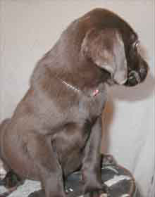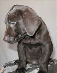 Male 9.7 Playful puppy Mouth dog Good nose Quite curious Smart puppy Good family dog Hunt prospect Above average energy. |
