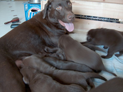Nine puppies total, but Sarah is keeping a girl.